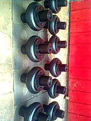 ●橡膠元件(輪胎體)與金屬壓板硫化粘結在一起,裝配時用螺栓直接與兩半聯軸器聯結